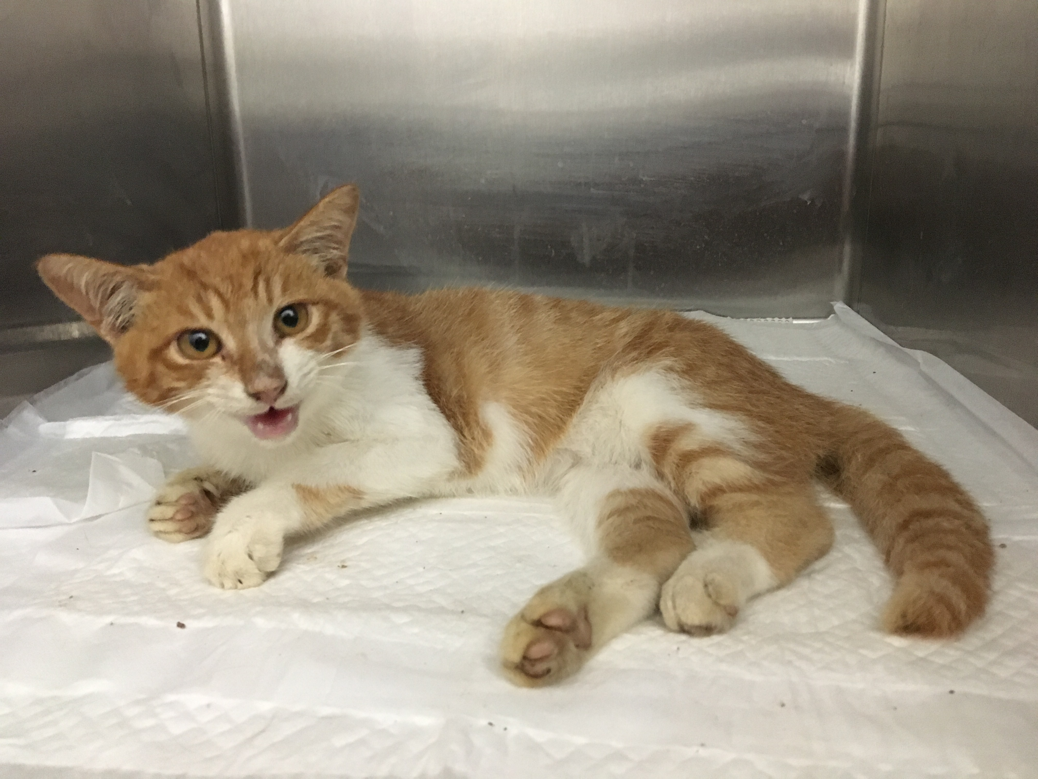 ※お餅と名付けた子猫。お餅の手術費の募金を募りたいと思います。生後約3ヶ月で大事故にあってしまったお餅。もしかすると自力で歩くことや、排泄が難しくなる障害を持ってしまうかもしれないけれど、今のままだと便が排泄されないので、すぐに死んでしまう可能性も。